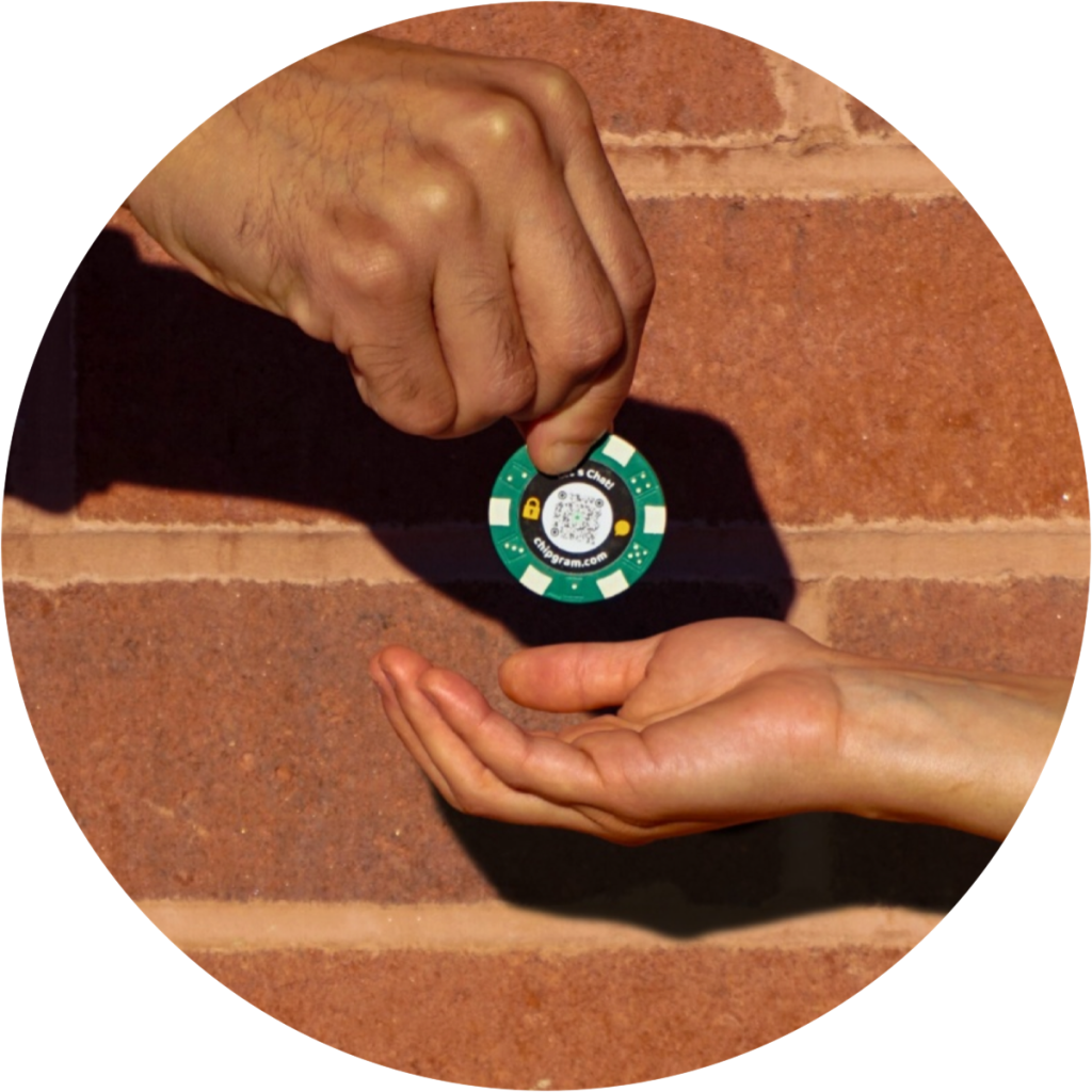 Slip the chip into someone’s hand, or leave it behind for them to find. Introduce it if you would like or let the chip do the work on its own.