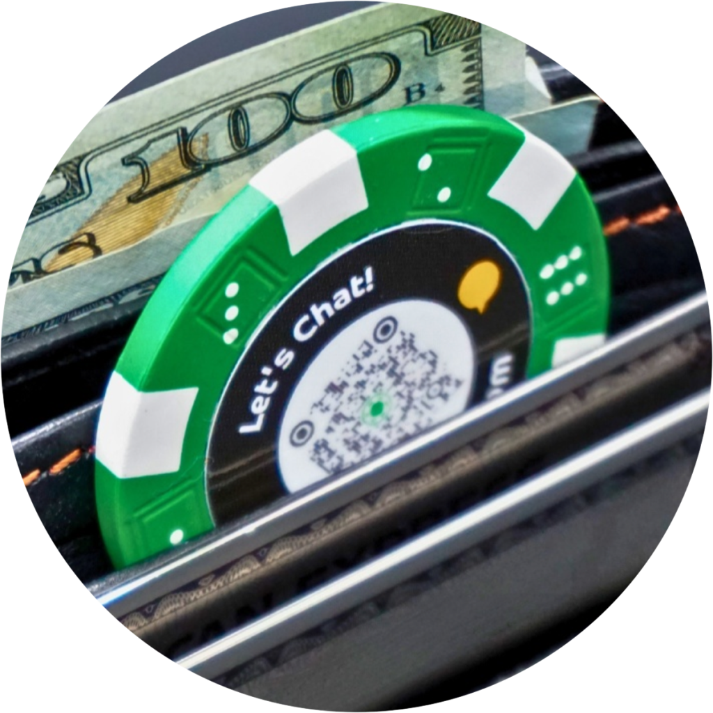 A chip you can hand over, leave behind, or offer at the edge of a conversation.